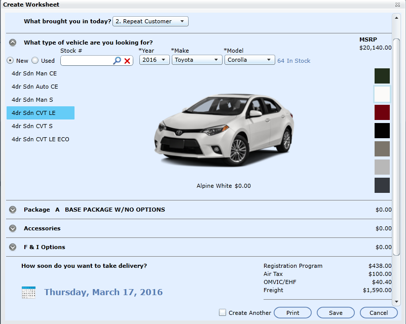 OEM accessories can be setup to add automatically to every new and/or used deal.