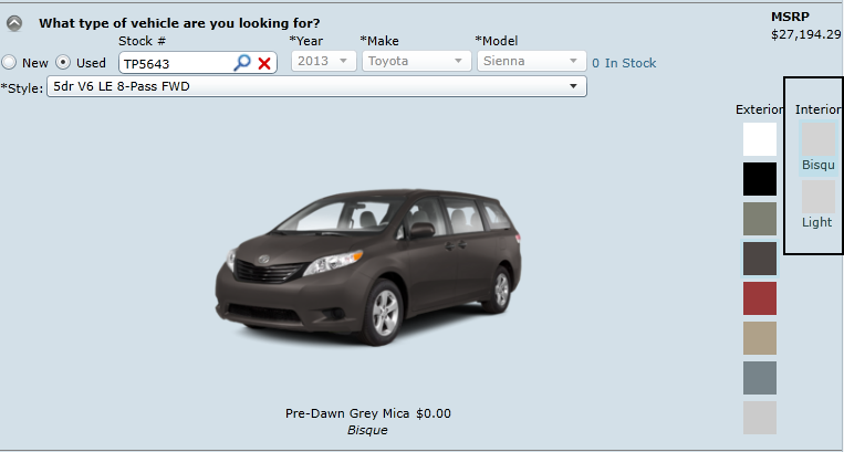 Vehicle selection allows you to build a vehicle, using real trim levels and packages using data we receive from Chrome.