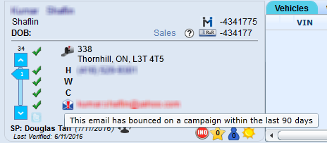 Search any bounced email in DealerMine and you will see the email address as flagged in red if the email has bounced at least once in the last 90 days.