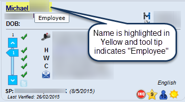 To make it easier for the user to identify an employee from a regular customer, DealerMine will Flag the file by highlighting the employee name in yellow and a tool tip will display "Employee".Â