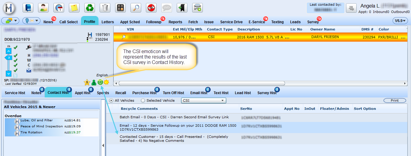 CSI emoticon - hover over the emoticon to read last CSI results in Contact History.