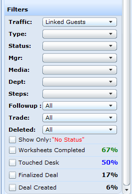We have added a couple of new filters to Traffic Log > Desk Log "Trade" and "No Status".