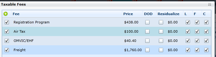 Any taxable fees can also be added to Due on Delivery (DOD) and flagged to be Residualized if applicable.