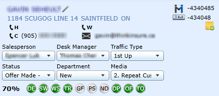 The DealerMine customer # and DMS customer # will be visible on this screen.