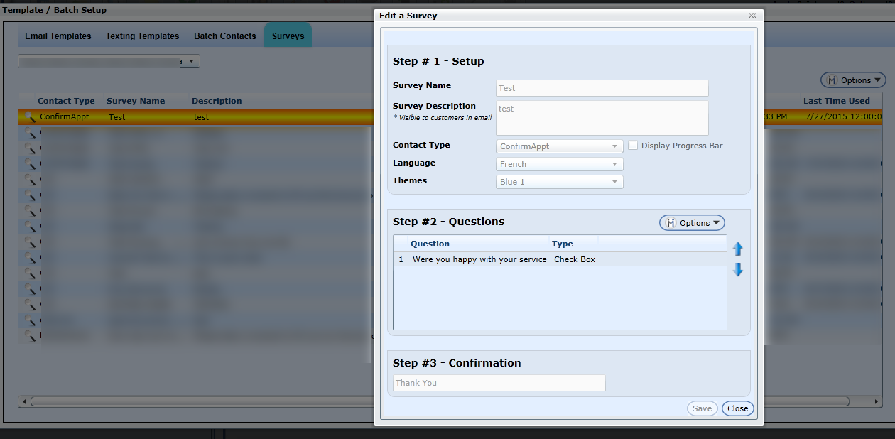 To Edit or Delete a survey simply click on the Survey to highlight on the grid and then in the options make the selection.Â