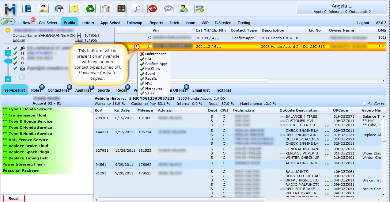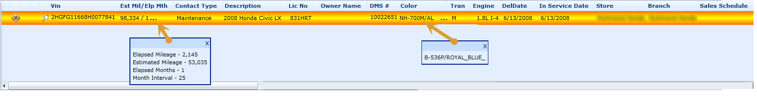 Vehicle information displays all vehicles on the customer profile you are viewing. Â
