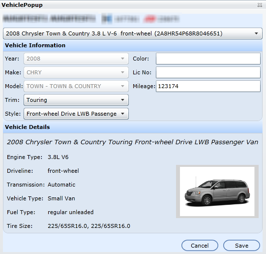 Trim, Style, Color, LicNo and Mileage which can be updated.Â