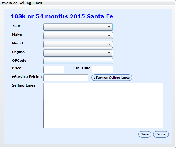 eService Selling Lines button will display here as well