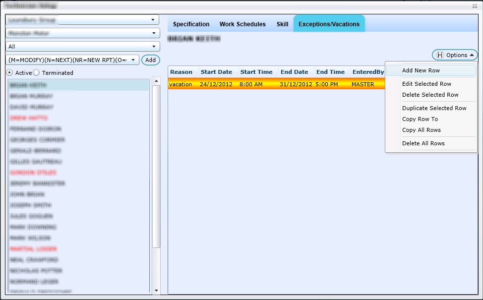 Exceptions/Vacations will allow you to block off any Date Range or Multi-Date (s) for any Advisor when they are out of work. (Vacation, Sick etc.)