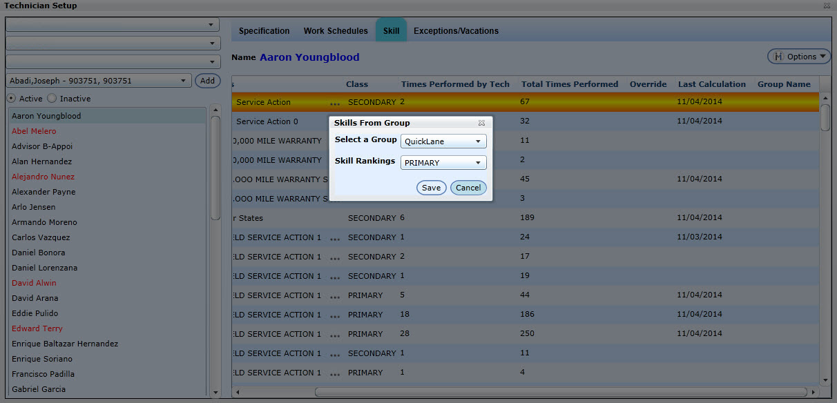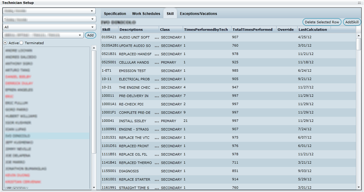 DealerMine will pull over all performed skills and classify each skill as either a PRIMARY or a SECONDARY.