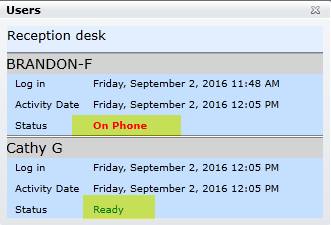When viewing the Status of a user in the User popup to make it easier for a suer to see we will display the status "Ready" in green and "On Phone" will display in red.