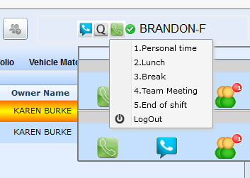 When the Users icon is clicked on from the Call Queue it will open the Users popup which will display the status of all the users that are linked to that Queue and are logged into DealerMine, this will also display the status of each user.