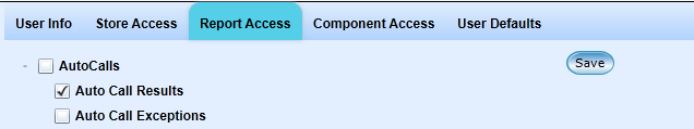 If the employee should view all the reports listed under a section, select the report check box from this level, or click the + to view the other reports listed, and select the appropriate reports. For example, if the check box next to Auto Calls is selected, the employee has access to Auto Call Results and Auto Call Exceptions. If access to only one of these reports is required, select the + next to Auto Calls to expand the selection, and select either Auto Call Results or Auto Call Exceptions.