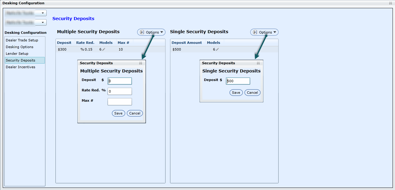 Multiple security deposits are sometimes offered when leasing by certain manufacturers. A security deposit is typically the monthly payment rounded to the nearest up to the nearest $50. Multiple security deposits offer a rate reduction for each deposit up to the maximum number of deposits. Security deposits are refundable at the end of the lease and can save you money throughout the lease since your rate is reduced by each iteration.