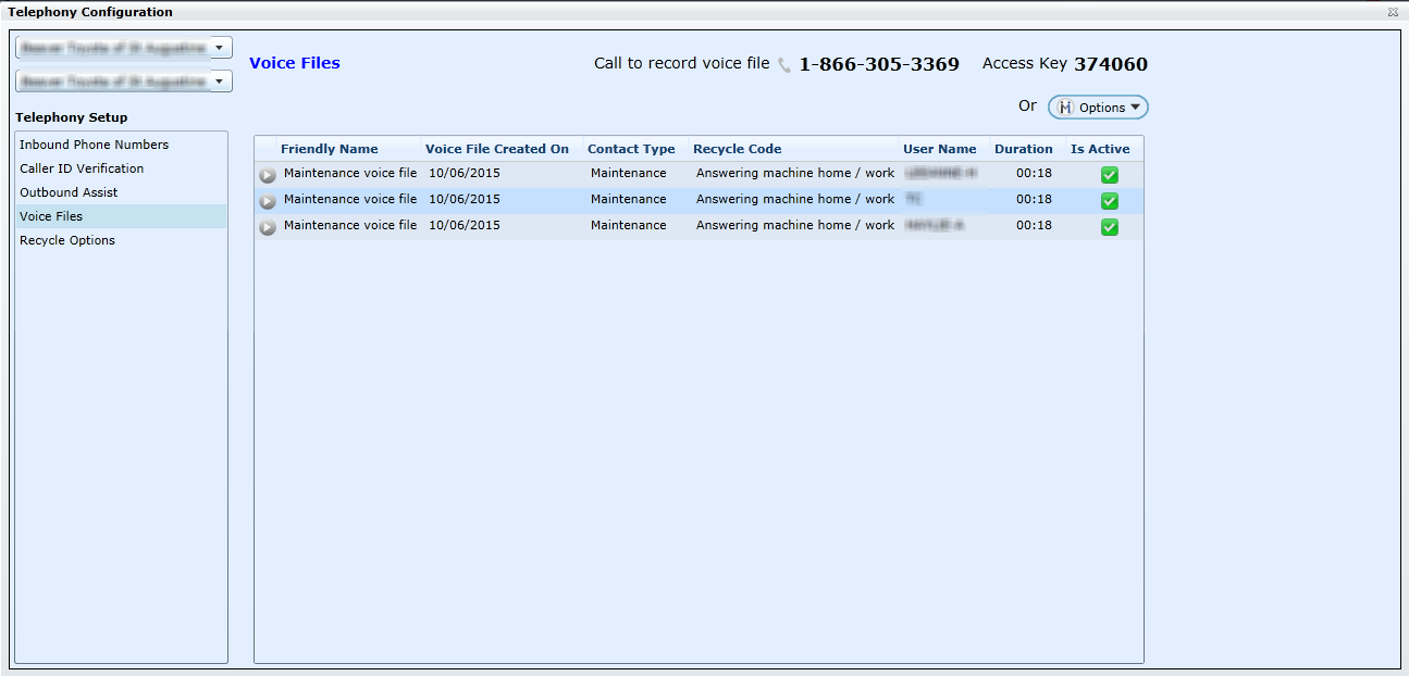 Voice files can be recorded over the phone by dialing 1-866-305-3369 and entering your dealership Access Key as shown on the screen