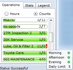 When a limitation is set on a Maintenance Group in Shop Hours>Opcode Control, on the Appt Sched a Red Exclamation will display by the Service to let the use know that it is at the limit or is over booked. A hover over will display what the limitations were set that Maintenance Group.