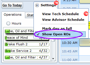Open RO's are now displayed on the Appointment Schedule for the current day and any past date (data depending on past dates).