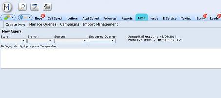 DealerMine's Fetch Utility., prior to sending an Email Campaign. The JangoMail account information will be automatically refreshed when entering the Fetch utility. The data displayed consists of the following JangoMail Usage Statistics: