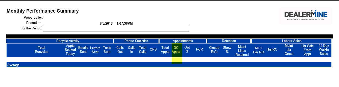 We have added a new report which summarizes the efforts put forth daily by any Service BDC, Sales/Service BDC or BDC Manager, tracking the outcome of their contributions towards your service department. Rounding out this report, is the option to set custom benchmarks by user or by store as well as enter phone statistics (In, out, QPS etc.) This Monthly Performance Summary report can be run anytime, or setup to be emailed automatically.Â