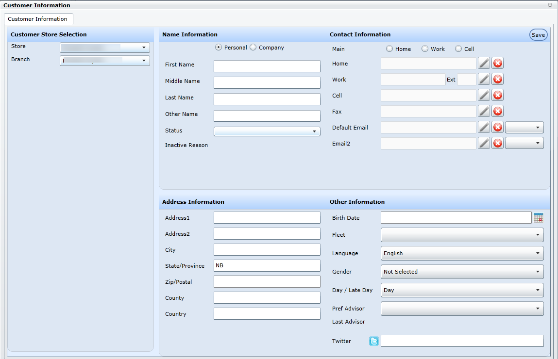 in the upper right corner, once clicked it will open the Customer Information screen where the user can add the new customer.