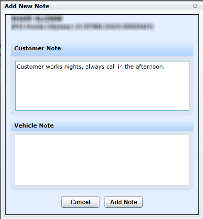 Click the above menu button to add Customer and/or Vehicle notes to any customer Profile.