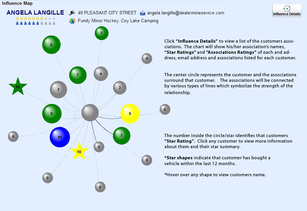 Click the Stars while viewing the customer profile to see more detailed information on the Influence Network.