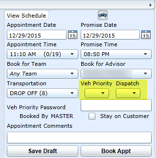 When booking an appointment for ERA dealerships only the Vehicle Priority and Vehicle Dispatch drop downs will display. They drop downs will default to 0 (blank) and the user is able to select from 1-5 in both drop downs.