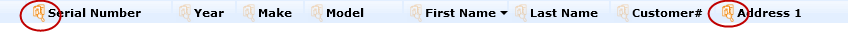 Click the icon to the left of any column name to hide any duplicates within that column. Ie. Serial Number, Address Line 1, Customer #