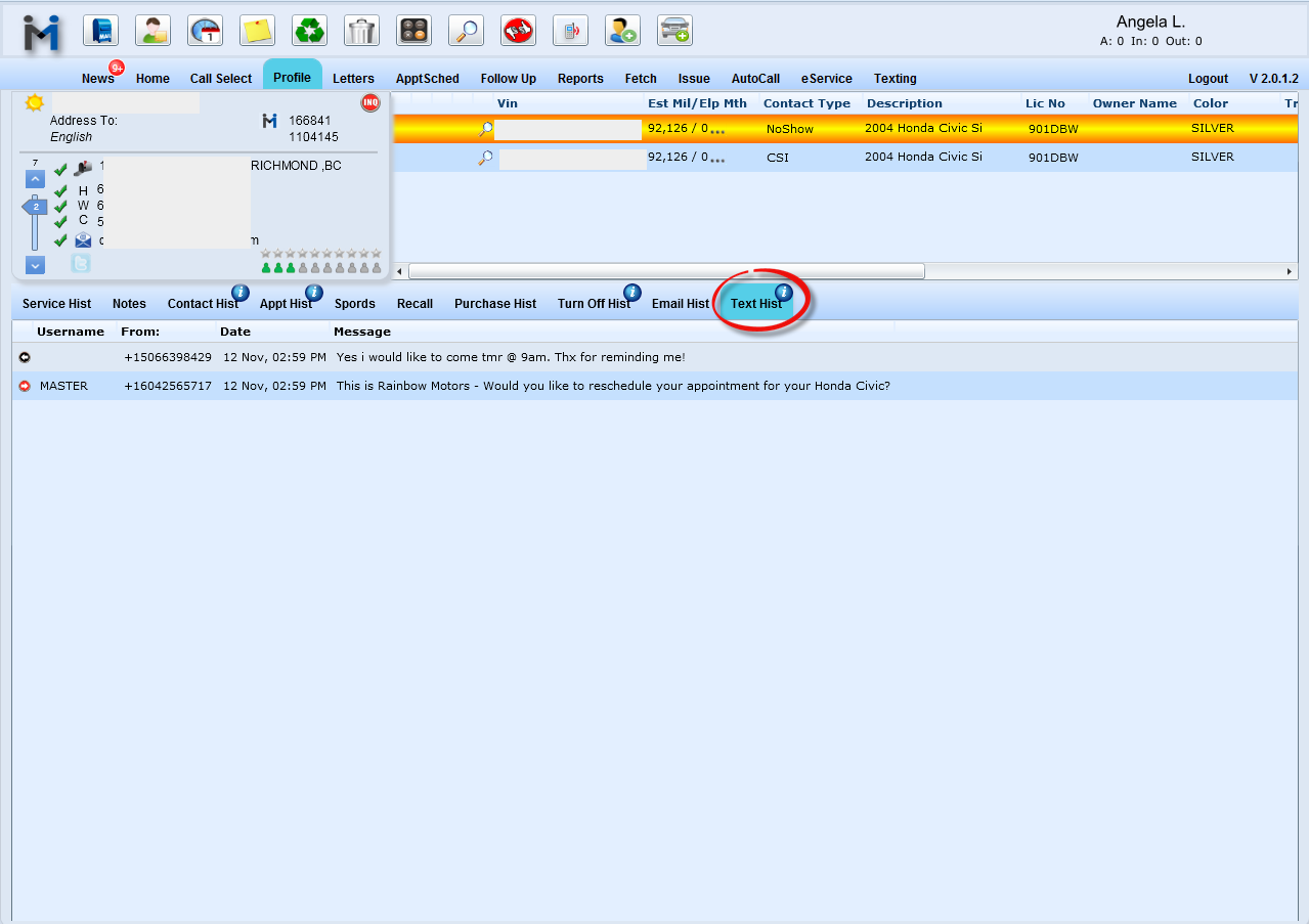 Incoming Orphans - all incoming texts where we cannot find a match to the 10-digit phone number belonging to the sender. Right click to search for a match using your existing database. This will link up your texting history with the appropriate customer file.