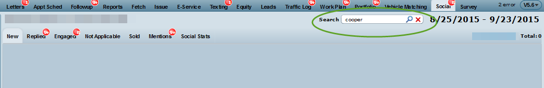 On the Social tab in the sub tabs New, Replied, Engaged, Not Applicable, and Sold we have added a Search Field where a user is now able to search for Tweets within these tabs by using any of the following fields:
