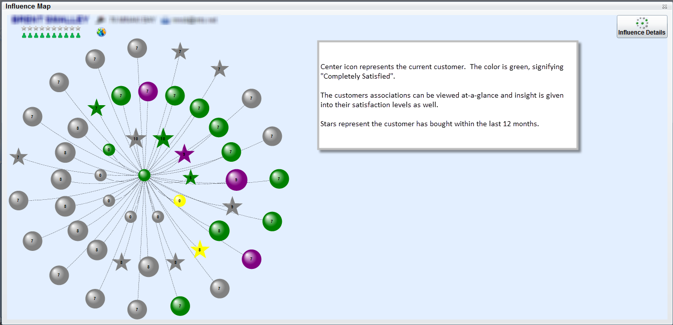 Click the Stars while viewing any customer profile to view more details about their Influence Network.
