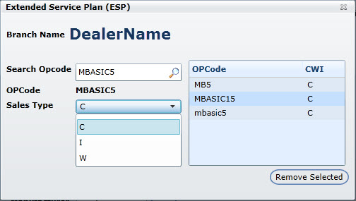 Ford Extended Service Plan (SalesType Override)DealerMine has received several requests for the ability to override an Operations corresponding SalesType in regards to Ford's Extended Service Plan (ESP). So, we have given those Ford customers who's DMS = ADP/Reynolds the ability to do so within their Store Setup (e.g. Admin Screen > Store Setup > Store Setup > Store Details > ESP). Depending on your DMS you will have the following options., by OpCodes (ADP) or specified GroupCodes (Reynolds).