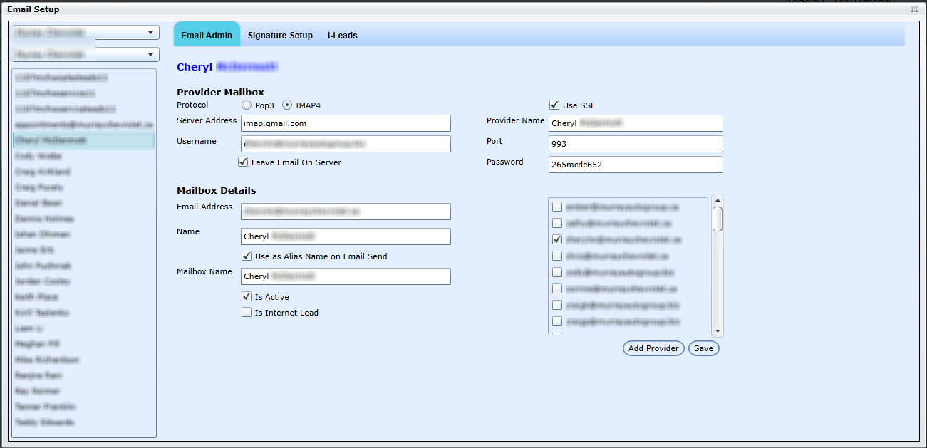From this screen, enter the Provider Mailbox, Mailbox SMTP information, Mailbox Details and select employees who require email access. See image below: