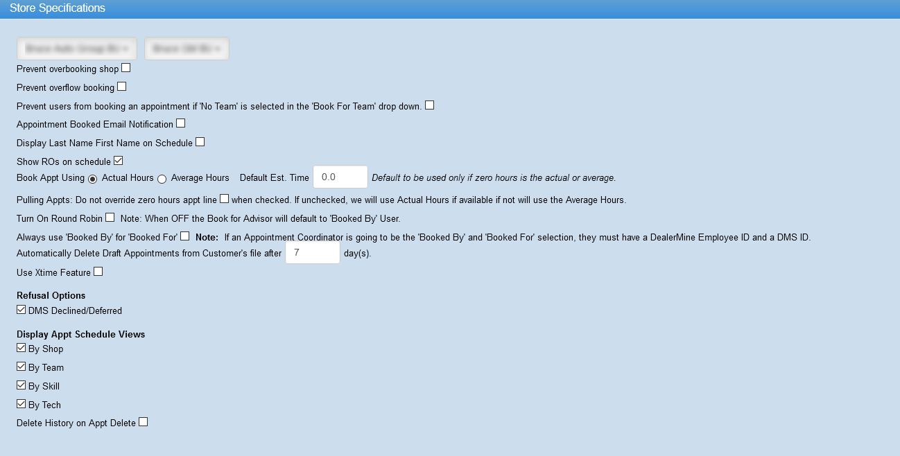 if checked the 'Booked for' will default to the 'Booked by' User. If an Appointment Coordinator is going to be the 'Booked By' and 'Booked For' selection, they must have a DealerMine Employee ID and a DMS ID.