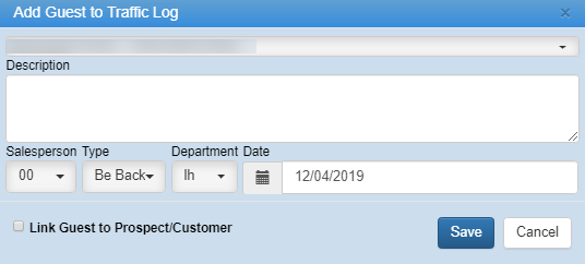 If a Guest doesn't have a Customer or Prospect file, to add the guest to the Traffic Log, complete the following steps: