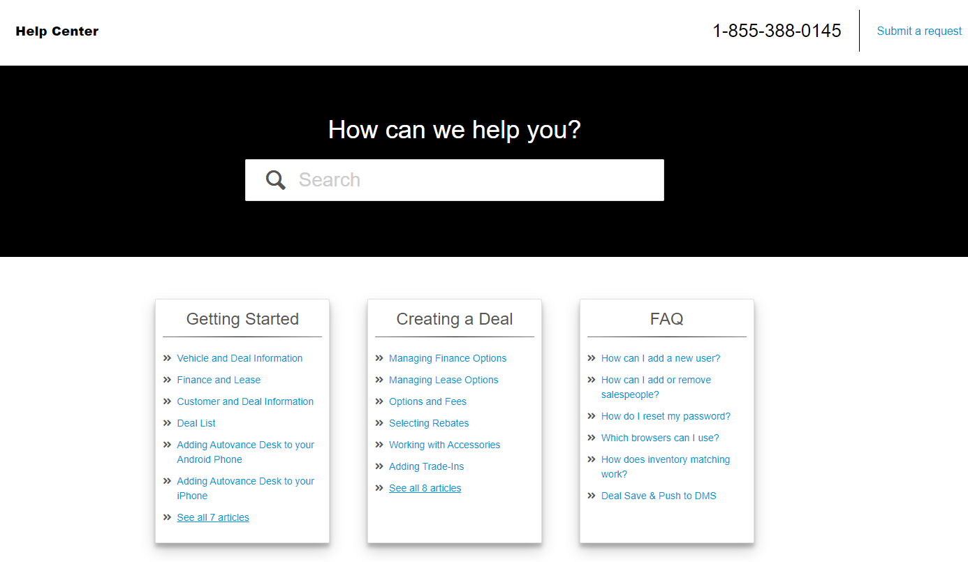 You will be redirect to the Help Center where you can call their support line or click "Submit a Request" which will send an email directly to Autovance Support.Â