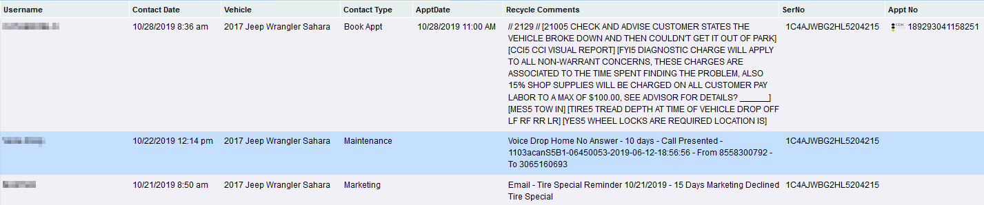 Vehicle - The Vehicle displays what vehicle the user was contacting the customer in regards to.