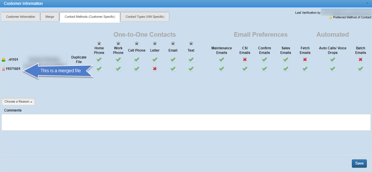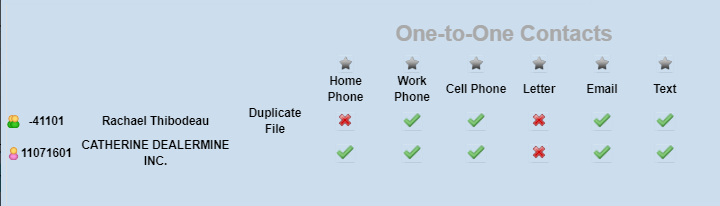 Click the green check mark and a red X will become visible, indicating this contact method is now "off" for this customer.