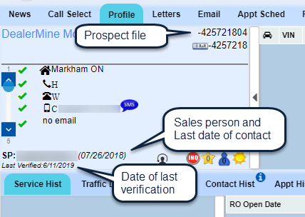 Salesperson name based on last sold deal, reassignment date or last sales activity date (using the most recent date). This will be visible on sold customers and prospect files. On prospect files it will always go by the last activity date.