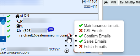 DealerMine displays an information icon beside the customer’s email on the customer profile to indicate which method of email contact is turned off. This icon will only display if there is at least one contact method turned off.Â