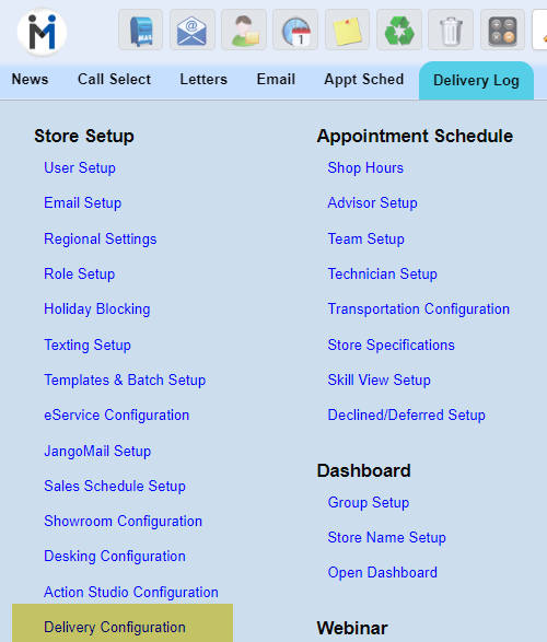 Access to the Delivery Log configuration to customize and make changes to the Delivery Log is given as shown below: