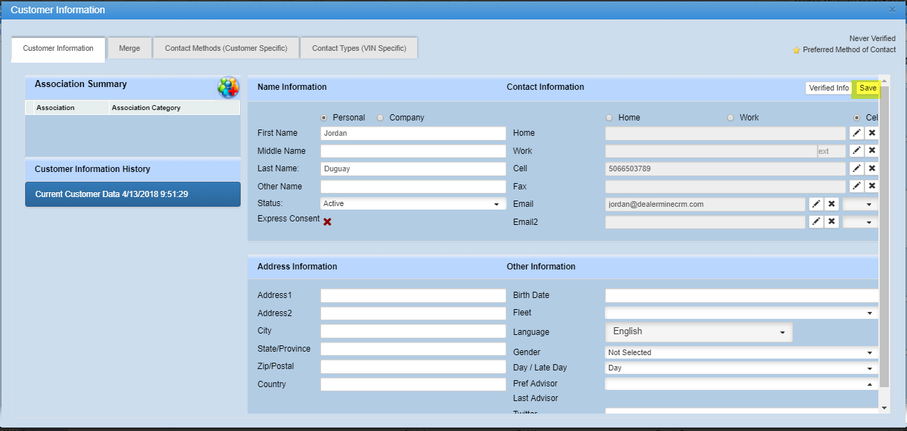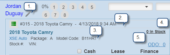 The top left-hand section of the screen is where you will be able to find the customer information, Vehicle Interest information etc.….