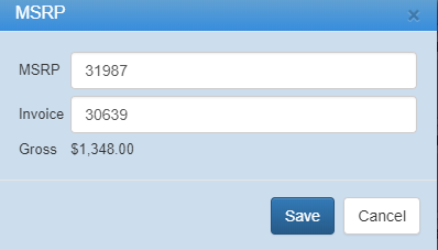 Changing the MSRP will also recalculate the gross. Ensure you hit save after making the change to MSRP.Â