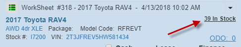 4)Â Â Â You will also see the number of matching in stock vehicles you have; by selecting this DealerMine would allow you to add or change the stock number associated to the worksheet.Â