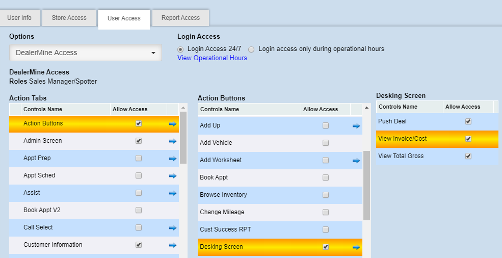 View Invoice/Cost - this will permit a user to view Invoices and the Cost on the Desking screen.