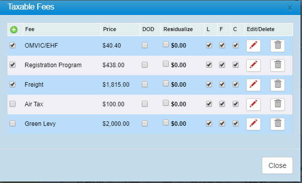 ·     If a fee has a check in the box to the left that fee has been added to the pricing breakdown (see OMVIC in the example above) this fee can be added or removed by selecting       or deselecting the box on the left.Â