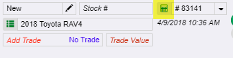 2) The Trade Value – any reconditioning fees if added (i.e. ($10,000 Trade Value – $2500 Reconditioning fee = $7500 Trade Allowance -Amount Owed $2000 = $5500 Equity) will display the trade allowance of $7500.