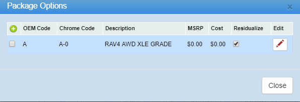 Note: If you do not see the Package you wish to add, simply select the green plus sign in the upper left-hand corner which allows you to enter all applicable package options you wish.Â