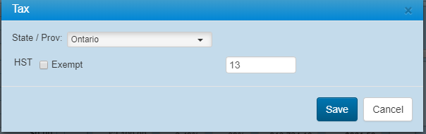 Tax- The rates are exposed on the screen depending on the Province selected, You are also able to edit the tax when need be by clicking on the cell. This will populate the Tax pop upÂ