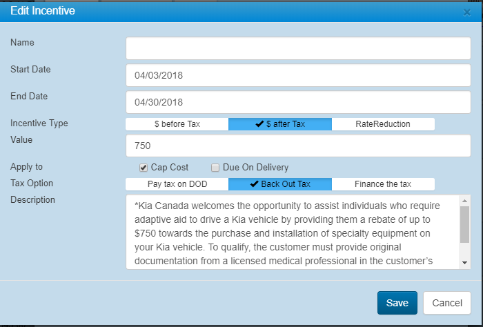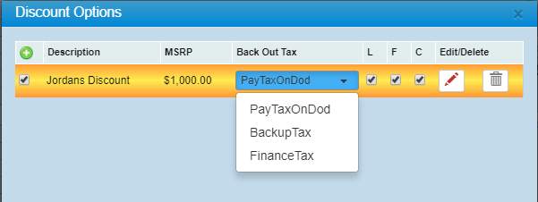 This allows you amend if you would like to apply the Discount to Lease, Finance, Cash and account for the tax accordingly.Â